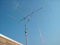 A Cushcraft 6m, 2m, and 70 cm beam hovers on a rotor